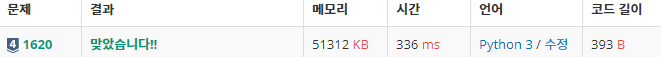 하지만 문제 수가 늘어나면 그만큼 연산 횟수가 증가한다. 실제로 이 코드로 제출해보면 시간 초과 에러가 난다.