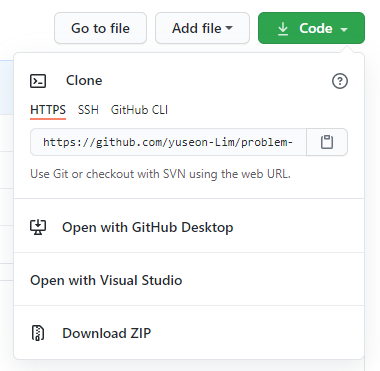 repository의 주소는 github 페이지 오른쪽 위에 있다.