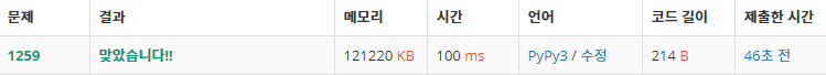 이때 그냥 list를 사용하지 않고 덱을 쓰는 이유는, 파이썬의 리스트에서 .pop(0)을하면 시간복잡도가 O(n)이 되기 때문이다. 따라서 앞, 뒤에서 pop할수있는 deque를 사용하면 실행 시간을 줄일 수 있다.