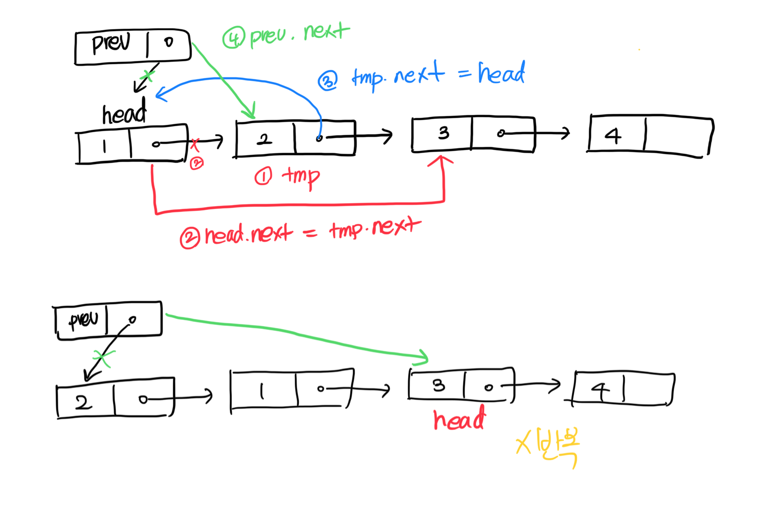 3. prev, head 각각 두칸씩 이동하도록 설정.