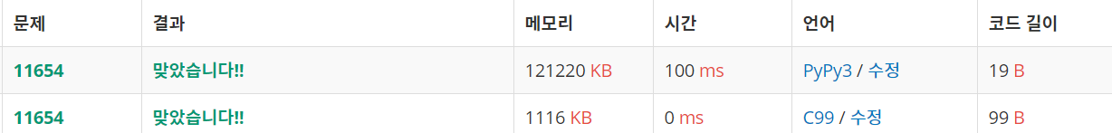 11654번: 아스키 코드