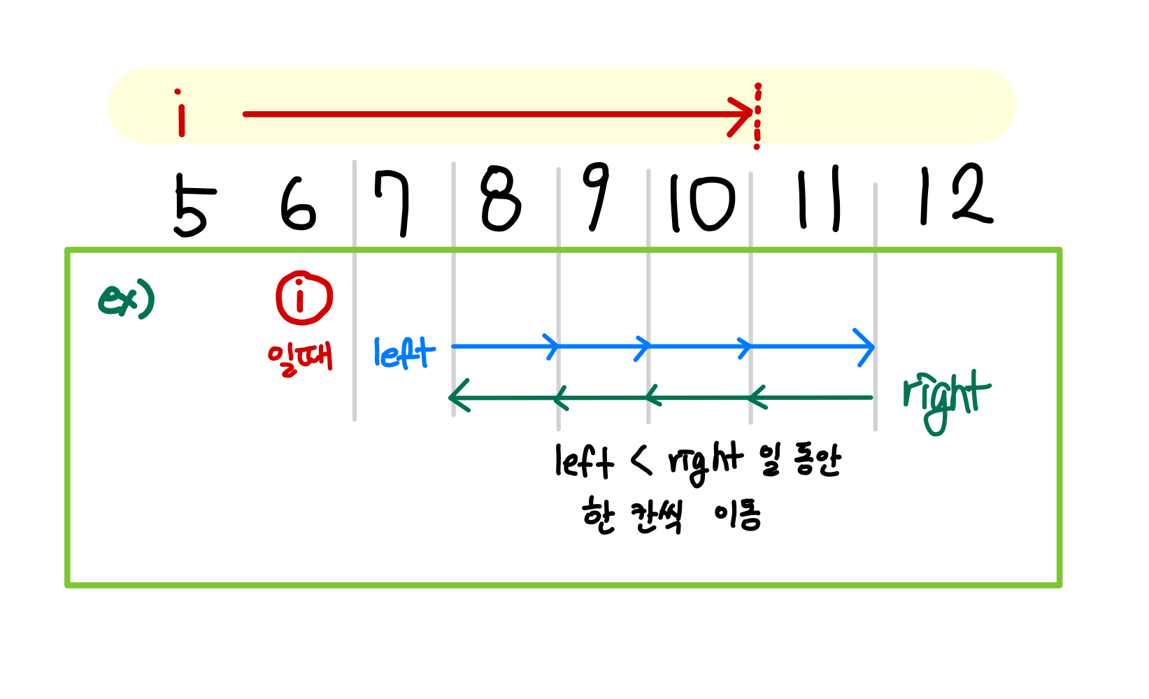 - left포인터는 i번째 바로 다음, right포인터는 끝을 가리킨다.